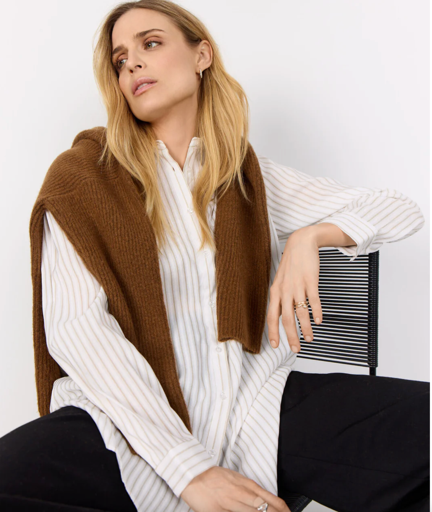 ARIANNE 2 Shirt is crafted from 80% LENZING™ ECOVERO™ Viscose and 20% Polyester. It features a classic collar, button-down front, long sleeves, and a subtle striped print. This elegant shirt pairs beautifully with tailored pants or a sleek skirt for any occasion.