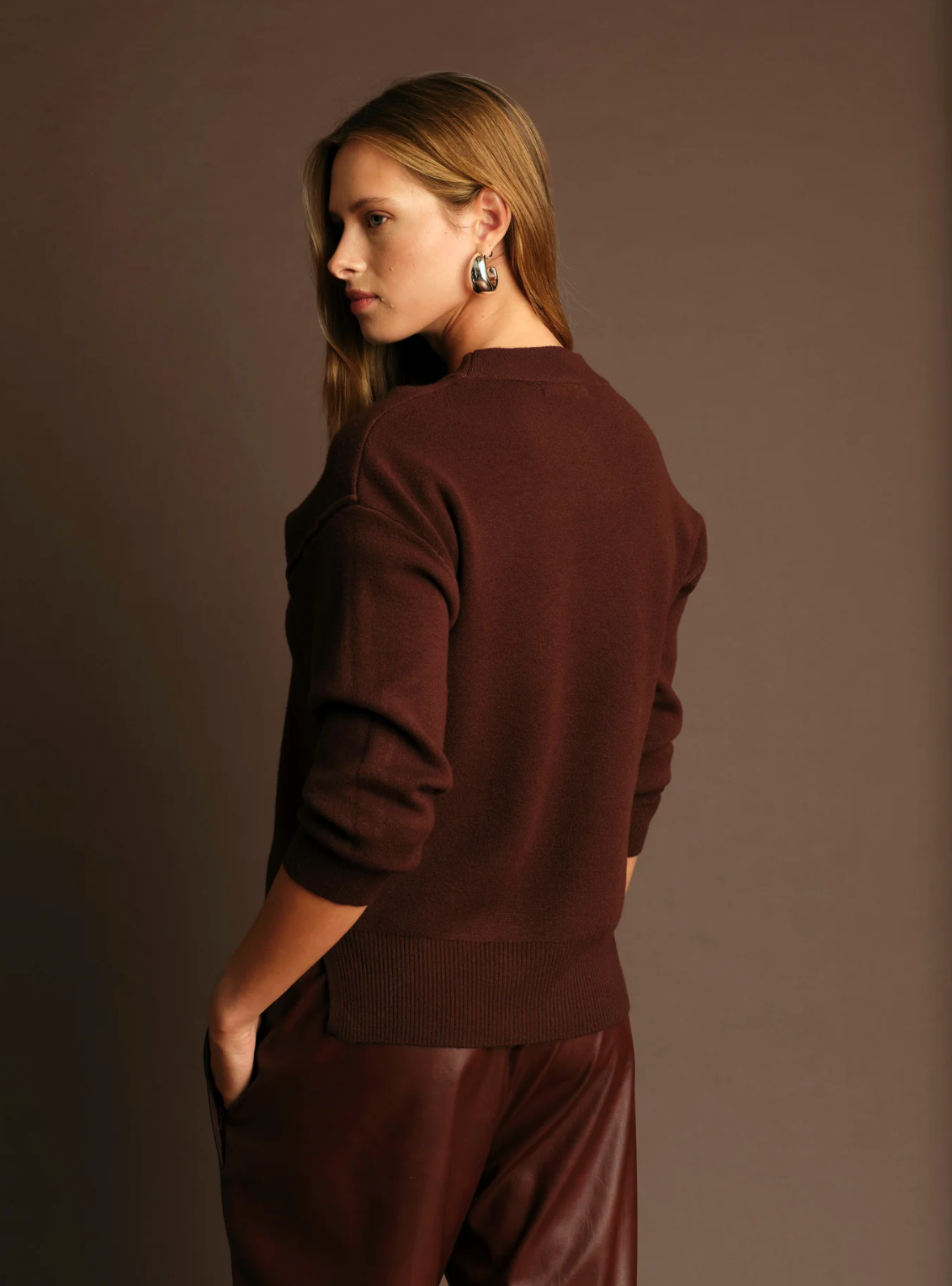 Viscose blend sweater with crew neckline and long sleeves. Detail of visible seams