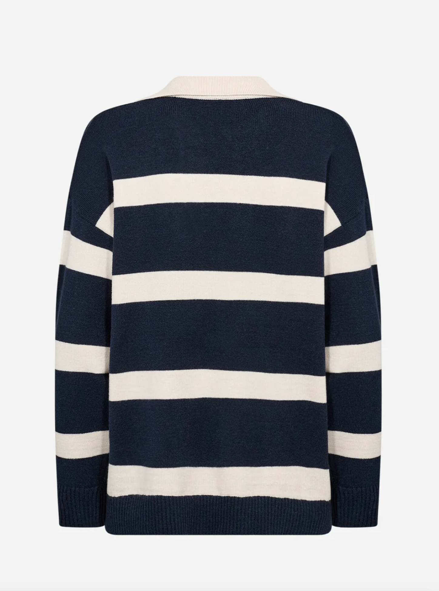 SC-KANITA STRIPE 32 Pullover is crafted from 50% LENZING™ ECOVERO™ Viscose, 27% Polyester, and 23% Nylon. It features a stylish collared V-neck and bold horizontal stripe design. This cool pullover pairs perfectly with jeans or a casual skirt for an elegant look.