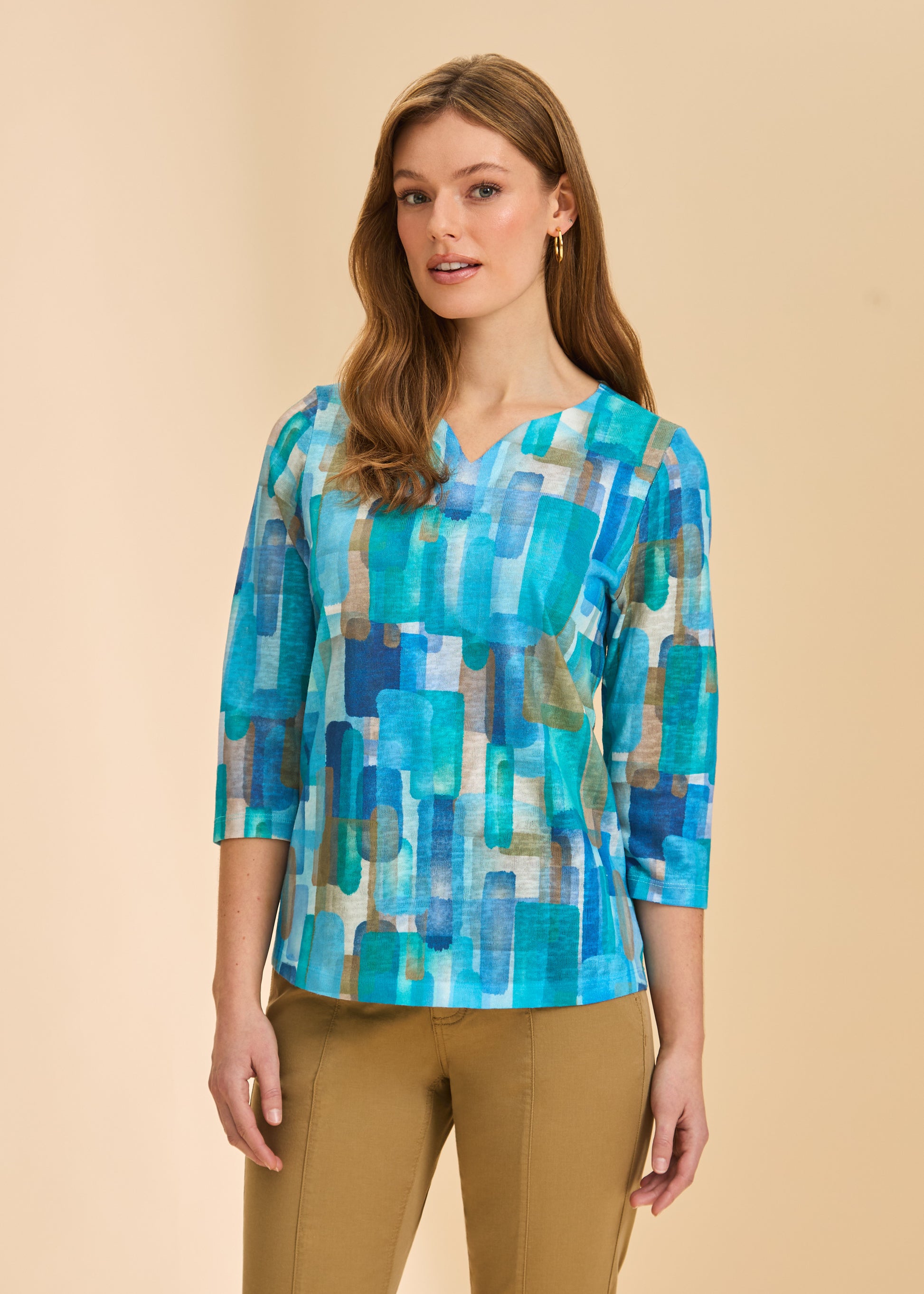 notch neck with 3/4 sleeve, comes in blue and orange colour way