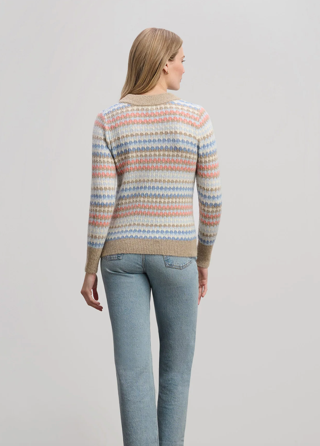 Playful dotted stripe design in multi-color pattern, ribbed hem and cuffs, double-layer mock neck for extra comfort